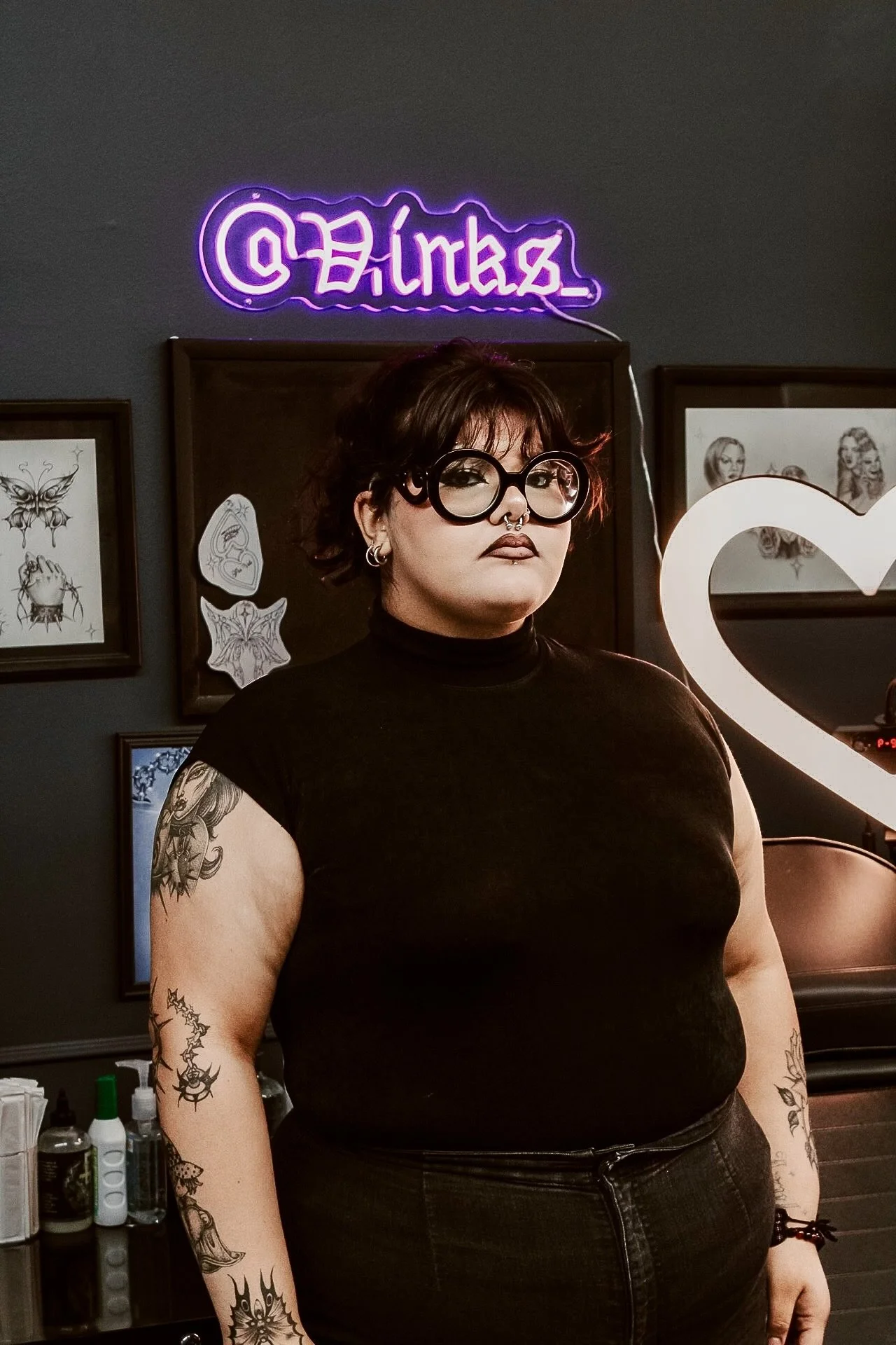 V is an artist and student who brings four years of tattooing experience to their craft. Their expertise spans various styles, yet they excel in black and white realism and dot work tattoos. V's focus lies on creating custom girl heads and delicate fine line Chicano designs, showcasing a dedication to unique and intricate tattoo artistry. With a keen eye for detail and a creative flair that knows no bounds, their work reflects a harmonious blend of diverse influences. Their perspective shines through in every masterpiece, showcasing a depth of understanding that captivates all who encounter their art. A true gem in the world of creativity, this individual's talent knows no Boundaries.